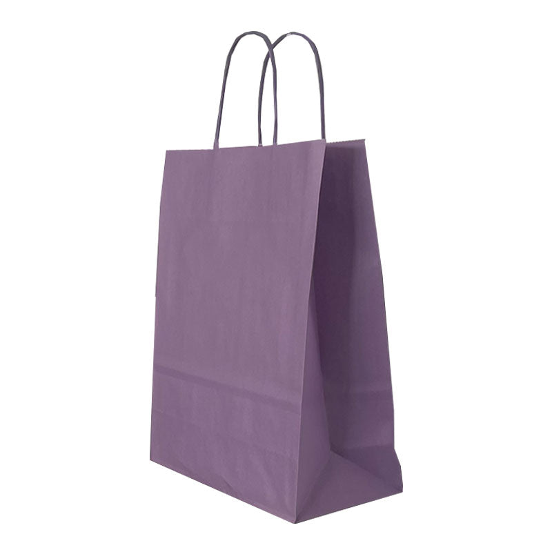 Punga hartie cadou cu maner rasucit cu dimensiunile de 18 x 8 x 22 cm, de culoare mov pastel cu interiorul alb. Grosime hartie 90-100 gr/m2. Material rezistent, certificat FSC®.