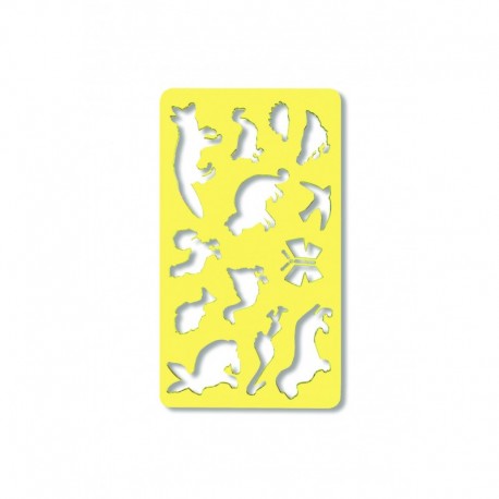 Sablon 13 animale diverse, cofectionat din material plastic. Dimensiune: 209x185 mm. Grosime: 2 mm.