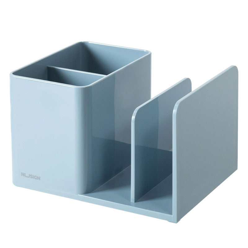 Suport instrumente de scris cu 2 compartimente si 2 separatoare din ABS rezistent cu dimensiunile 120 x 155 x 96 mm de culoare albastra din gama NUSIGN DELI. Baza anti alunecare pentru o pozitionare stabila. Colturi rotunjite pentru o utilizare in siguranta maxima. Format A4.