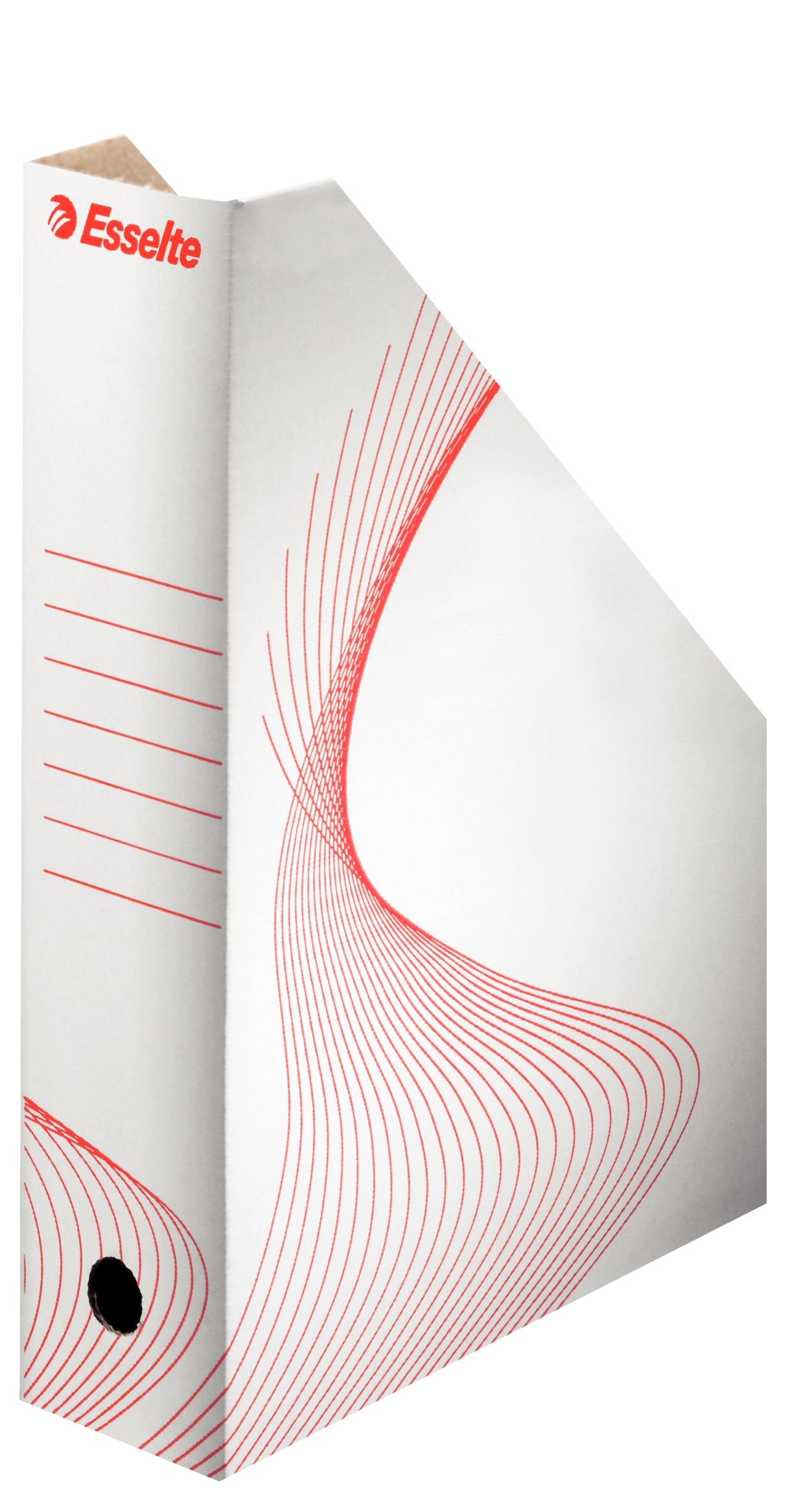 Suport vertical din carton rezistent pliabil, 100% reciclat si 100% reciclabil. Certificat FSC. Ideal pentru stocarea cataloagelor, revistelor, brosurilor etc. Cu orificiu de prindere pe cotor si spatiu pentru descriere continut. Dimensiuni: 80 x 322 x 254 mm.