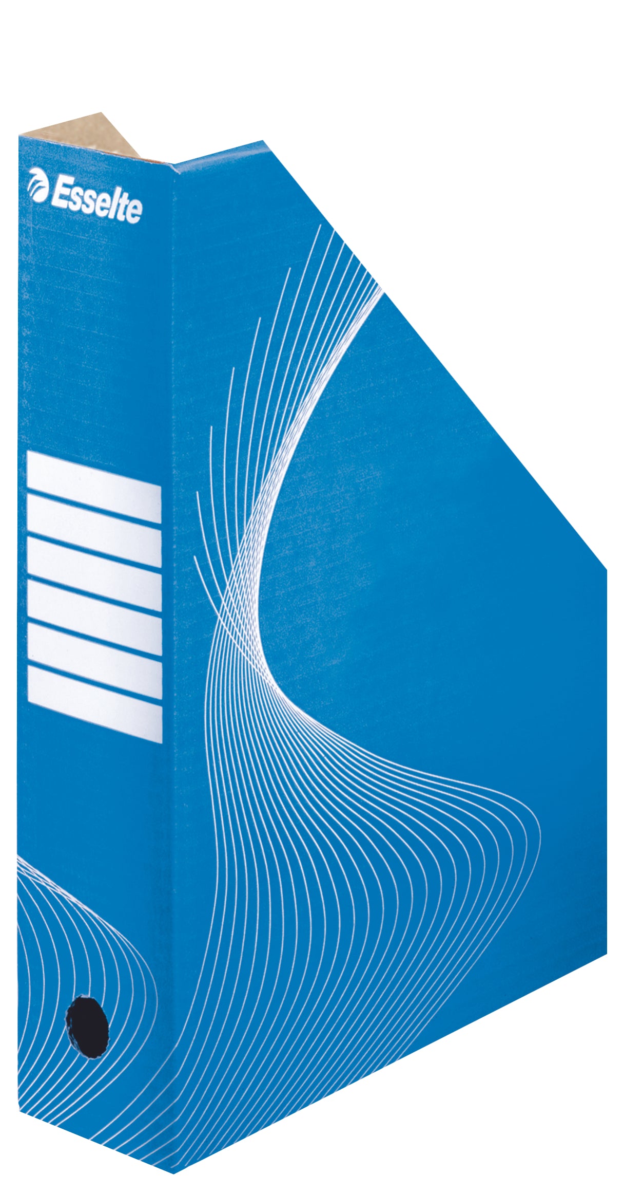 Suport vertical din carton rezistent pliabil, 100% reciclat si 100% reciclabil. Certificat FSC. Ideal pentru stocarea cataloagelor, revistelor, brosurilor etc. Cu orificiu de prindere pe cotor si spatiu pentru descriere continut. Dimensiuni: 80 x 322 x 254 mm.